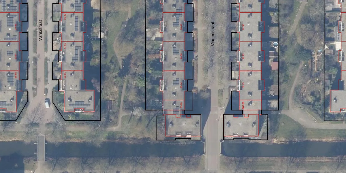 Het perceel waarop Vianenstraat 66 staat heeft een oppervlakte van 6480 m². Dit is een zeer groot perceel. De perceeloppervlakte wordt geregistreerd door het Kadaster. Gedetailleerde informatie over de maten van dit perceel kunt u vinden in het rapport Kadastrale kaart met maatvoering van Vianenstraat 66.