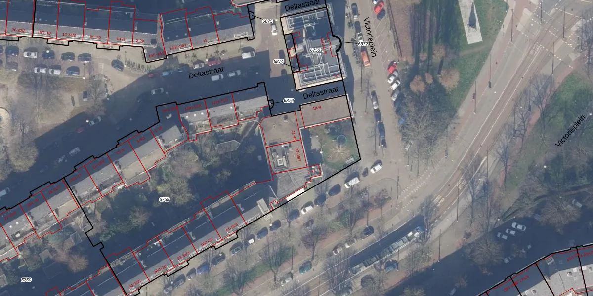 Het perceel waarop Victorieplein 39-1 staat heeft een oppervlakte van 3845 m². Dit is een zeer groot perceel. De perceeloppervlakte wordt geregistreerd door het Kadaster. Gedetailleerde informatie over de maten van dit perceel kunt u vinden in het rapport Kadastrale kaart met maatvoering van Victorieplein 39-1.