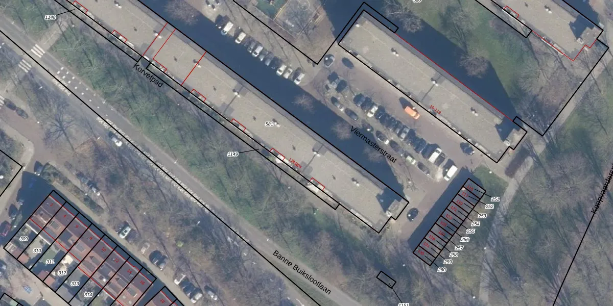 Het perceel waarop Viermasterstraat 136 staat heeft een oppervlakte van 2280 m². Dit is een zeer groot perceel. De perceeloppervlakte wordt geregistreerd door het Kadaster. Gedetailleerde informatie over de maten van dit perceel kunt u vinden in het rapport Kadastrale kaart met maatvoering van Viermasterstraat 136.