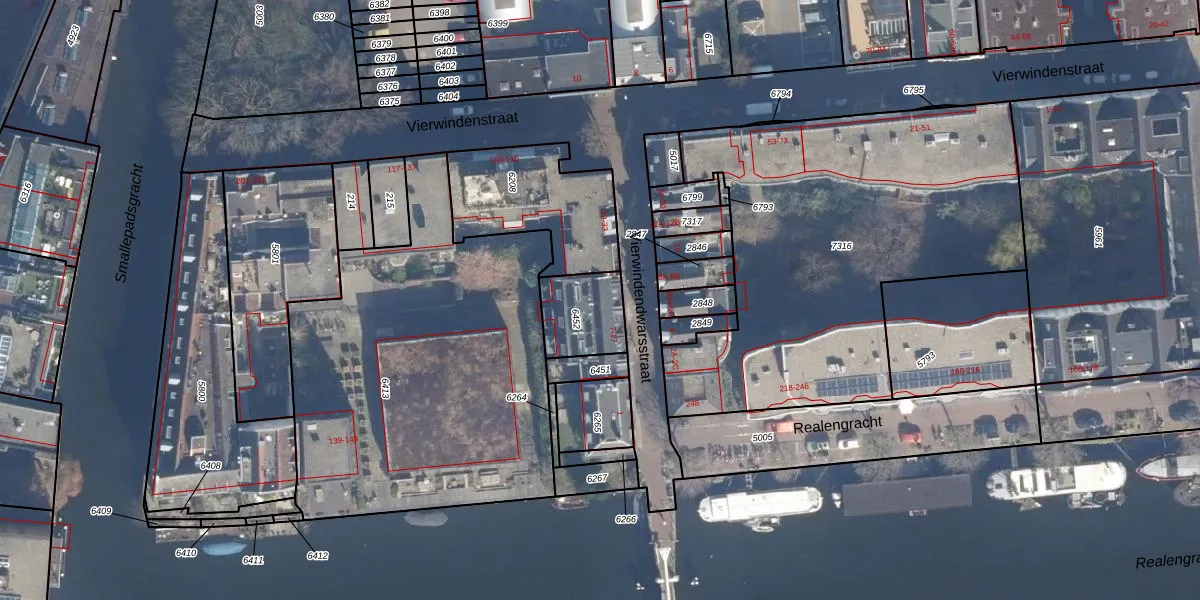 Het perceel waarop het adres ligt is ASD09-M-6452. De afkorting 'ASD09' staat voor kadastrale gemeente Amsterdam. Het perceel is 187 m² groot. Dat is kleiner dan de gemiddelde perceeloppervlakte in Amsterdam, dat op 550,83 m² ligt. Het grootste perceel in de kadastrale gemeente is 14,3 ha. Het kleinste perceel heeft een oppervlakte van 1 m². Op het perceel zijn 11 adressen aanwezig. In de Basisregistratie Kadaster (BRK) werden de grenzen van het perceel geregistreerd op 30-11-2006.