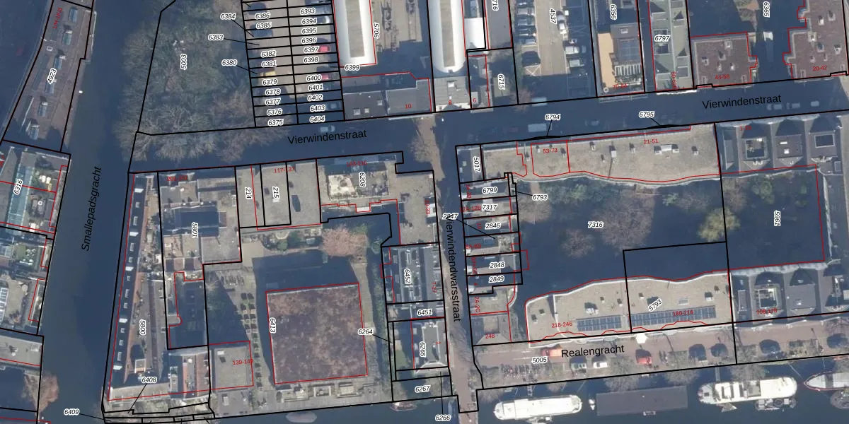 Vierwindendwarsstraat 23 is gelegen op kadastraal perceel ASD09M6208. Deze kadastrale aanduiding is uniek en wordt gebruikt door het Kadaster om eigendomsrechten en andere zakelijke rechten vast te leggen. Het perceel maakt onderdeel uit van de kadastrale gemeente Amsterdam.