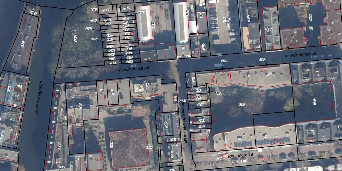 Het perceel waarop het adres ligt is ASD09-M-6208. De afkorting 'ASD09' staat voor kadastrale gemeente Amsterdam. Het perceel is 446 m² groot. Dat is kleiner dan de gemiddelde perceeloppervlakte in Amsterdam, dat op 550,83 m² ligt. Het grootste perceel in de kadastrale gemeente is 14,3 ha. Het kleinste perceel heeft een oppervlakte van 1 m². Op het perceel liggen in totaal 15 adressen. In de Basisregistratie Kadaster (BRK) werden de grenzen van het perceel geregistreerd op 19-11-2019.