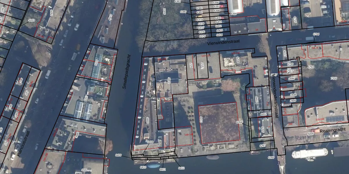 Het perceel waarop het adres ligt is ASD09-M-5801. De afkorting 'ASD09' staat voor kadastrale gemeente Amsterdam. De oppervlakte van het perceel is 584 m². Dat is groter dan gemiddeld in Amsterdam, waar de gemiddelde perceeloppervlakte op 550,83 m² ligt. De grootste perceeloppervlakte in de kadastrale gemeente is 14,3 ha. De kleinste oppervlakte bedraagt 1 m². Op het perceel zijn 38 adressen aanwezig. De laatste wijziging in het de Basisregistratie Kadaster (BRK) was op 19-11-2019.