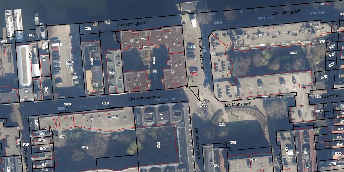 Het adres is gelegen op perceel 6365 in de sectie M en de kadastrale gemeente Amsterdam. De kadastrale aanduiding is aldus ASD09-M-6365. De gemiddelde perceeloppervlakte in de kadastrale gemeente Amsterdam is 550,83 m². Dit perceel is met zijn 1323 m² dus groter dan gemiddeld. Het kleinste perceel in de kadastrale gemeente is 1 m² groot. De grootste perceeloppervlakte is 14,3 ha. Op het perceel liggen in totaal 38 adressen. De huidige grenzen van het perceel zijn digitaal in de Basisregistratie Kadaster (BRK) geregistreerd op 19-11-2019.
