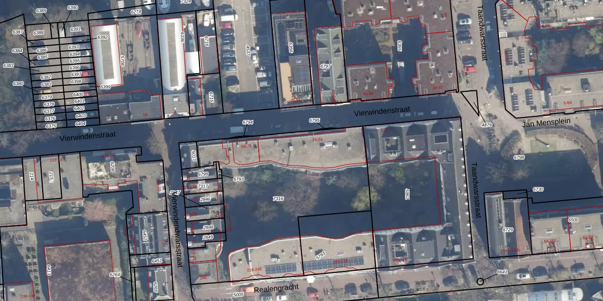 Het adres ligt op het perceel ASD09-M-7316, dat zich in de kadastrale gemeente Amsterdam bevindt. De oppervlakte van het perceel is 2071 m². Dat is groter dan gemiddeld in Amsterdam, waar de gemiddelde perceeloppervlakte op 550,83 m² ligt. Het grootste perceel in de kadastrale gemeente is 14,3 ha. Het kleinste perceel heeft een oppervlakte van 1 m². Op het perceel liggen in totaal 46 adressen. In de Basisregistratie Kadaster (BRK) werden de grenzen van het perceel geregistreerd op 27-10-2022.