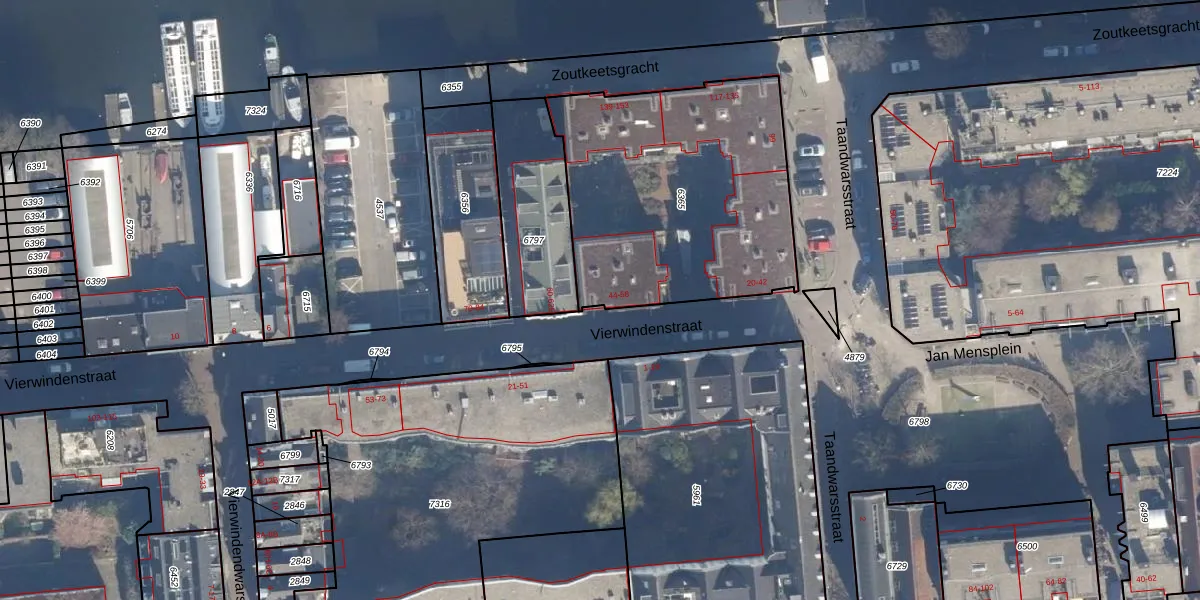 Het adres is gelegen op perceel 6365 in de sectie M en de kadastrale gemeente Amsterdam. De kadastrale aanduiding is aldus ASD09-M-6365. De gemiddelde perceeloppervlakte in de kadastrale gemeente Amsterdam is 550,83 m². Dit perceel is met zijn 1323 m² dus groter dan gemiddeld. Het kleinste perceel in de kadastrale gemeente is 1 m² groot. De grootste perceeloppervlakte is 14,3 ha. Op het perceel liggen in totaal 38 adressen. De huidige grenzen van het perceel zijn digitaal in de Basisregistratie Kadaster (BRK) geregistreerd op 19-11-2019.