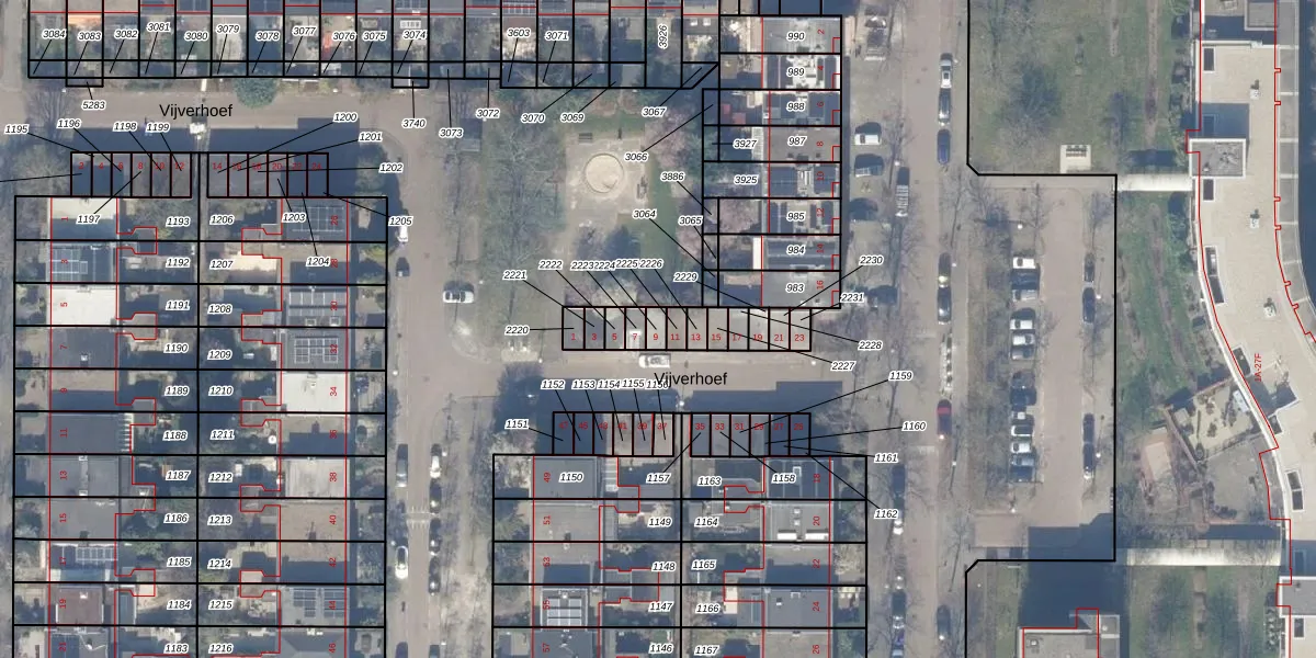Het perceel waarop Vijverhoef 9 staat heeft een oppervlakte van 20 m². Dit is een klein perceel. De perceeloppervlakte wordt geregistreerd door het Kadaster. Gedetailleerde informatie over de maten van dit perceel kunt u vinden in het rapport Kadastrale kaart met maatvoering van Vijverhoef 9.