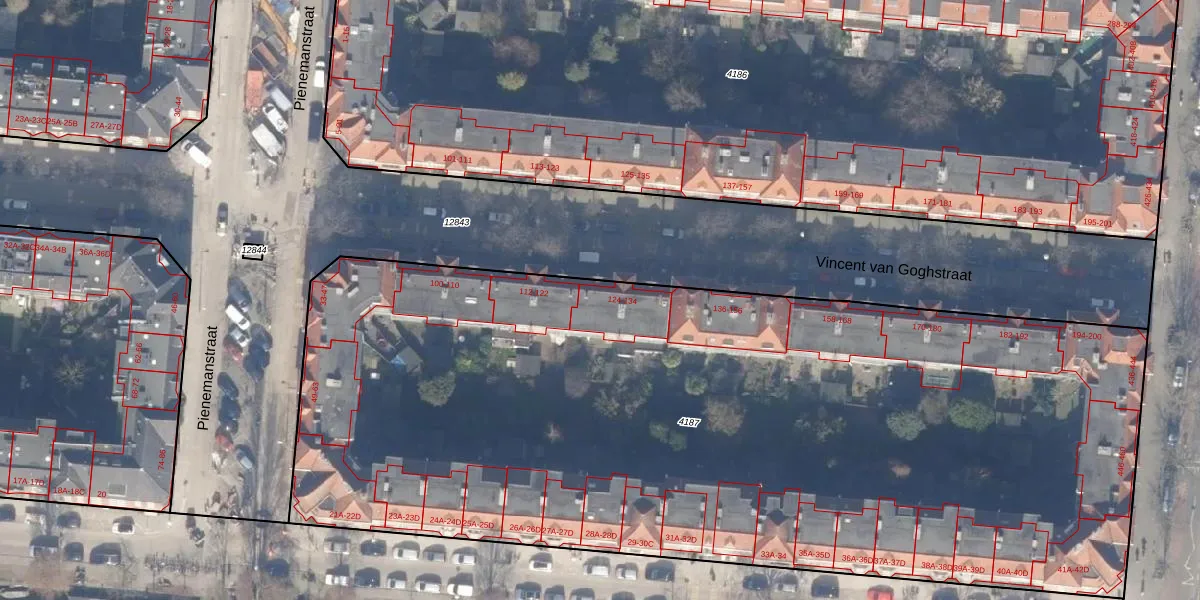 Vincent van Goghstraat 128 is gelegen op kadastraal perceel ASD18V4187. Deze kadastrale aanduiding is uniek en wordt gebruikt door het Kadaster om eigendomsrechten en andere zakelijke rechten vast te leggen. Het perceel maakt onderdeel uit van de kadastrale gemeente Amsterdam.