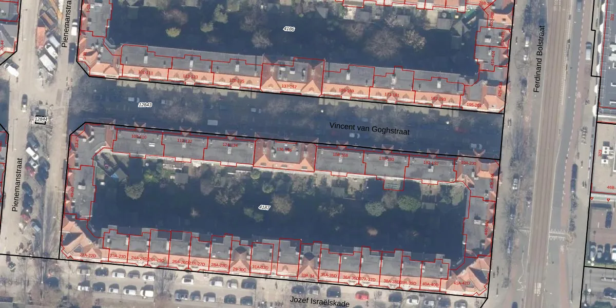 Vincent van Goghstraat 152 is gelegen op kadastraal perceel ASD18V4187. Deze kadastrale aanduiding is uniek en wordt gebruikt door het Kadaster om eigendomsrechten en andere zakelijke rechten vast te leggen. Het perceel maakt onderdeel uit van de kadastrale gemeente Amsterdam.