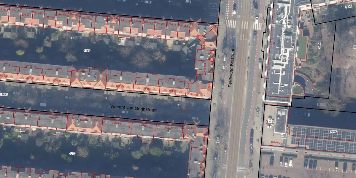Vincent van Goghstraat 191 is gelegen op kadastraal perceel ASD18V4186. Deze kadastrale aanduiding is uniek en wordt gebruikt door het Kadaster om eigendomsrechten en andere zakelijke rechten vast te leggen. Het perceel maakt onderdeel uit van de kadastrale gemeente Amsterdam.