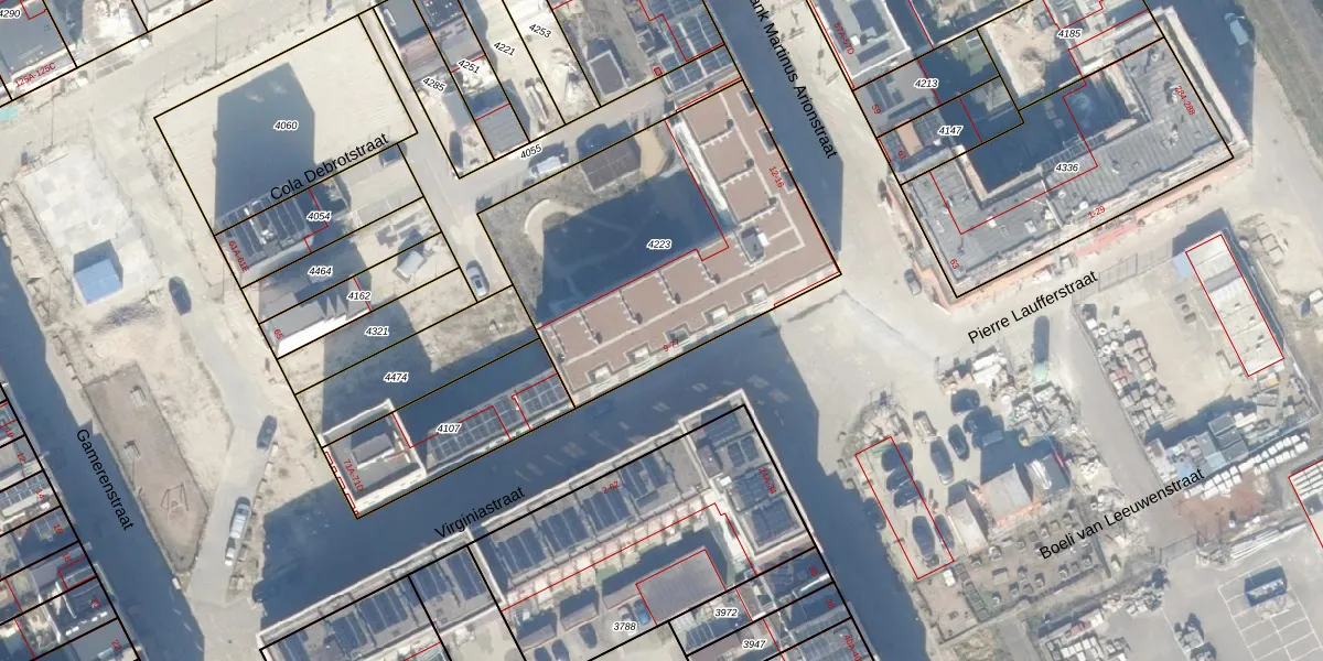 Virginiastraat 21 is gelegen op kadastraal perceel ASD41AU4223. Deze kadastrale aanduiding is uniek en wordt gebruikt door het Kadaster om eigendomsrechten en andere zakelijke rechten vast te leggen. Het perceel maakt onderdeel uit van de kadastrale gemeente Amsterdam.