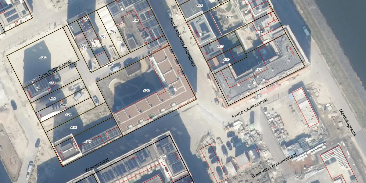 Het adres is gelegen op perceel 4223 in de sectie AU en de kadastrale gemeente Amsterdam. De kadastrale aanduiding is aldus ASD41-AU-4223. Het perceel is kleiner dan gemiddeld in Amsterdam. Het perceel is 1486 m² groot, terwijl het gemiddelde ligt op 7285,32 m². Het grootste perceel in de kadastrale gemeente is 2,75 km². Het kleinste perceel heeft een oppervlakte van 0 m². Er zijn 38 adressen aanwezig op het perceel. In de Basisregistratie Kadaster (BRK) werden de grenzen van het perceel geregistreerd op 13-09-2022.