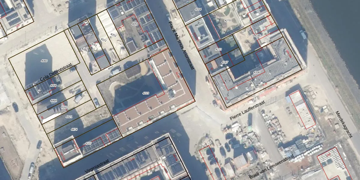 Het adres is gelegen op perceel 4223 in de sectie AU en de kadastrale gemeente Amsterdam. De kadastrale aanduiding is aldus ASD41-AU-4223. Het perceel is kleiner dan gemiddeld in Amsterdam. Het perceel is 1486 m² groot, terwijl het gemiddelde ligt op 7285,32 m². Het grootste perceel in de kadastrale gemeente is 2,75 km². Het kleinste perceel heeft een oppervlakte van 0 m². Op het perceel zijn 38 adressen aanwezig. De huidige grenzen van het perceel zijn digitaal in de Basisregistratie Kadaster (BRK) geregistreerd op 13-09-2022.