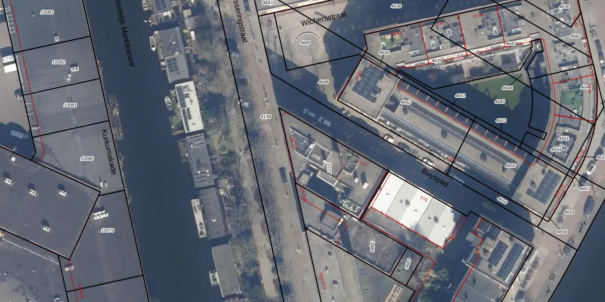 Het adres is gelegen op perceel 3777 in de sectie Y en de kadastrale gemeente Amsterdam. De kadastrale aanduiding is aldus ASD21-Y-3777. Het perceel is kleiner dan gemiddeld in Amsterdam. Het perceel is 606 m² groot, terwijl het gemiddelde ligt op 769,96 m². Het kleinste perceel in de kadastrale gemeente is 0 m² groot. De grootste perceeloppervlakte is 7,1 ha. Op het perceel liggen in totaal 18 adressen. In de Basisregistratie Kadaster (BRK) werden de grenzen van het perceel geregistreerd op 19-11-2019.
