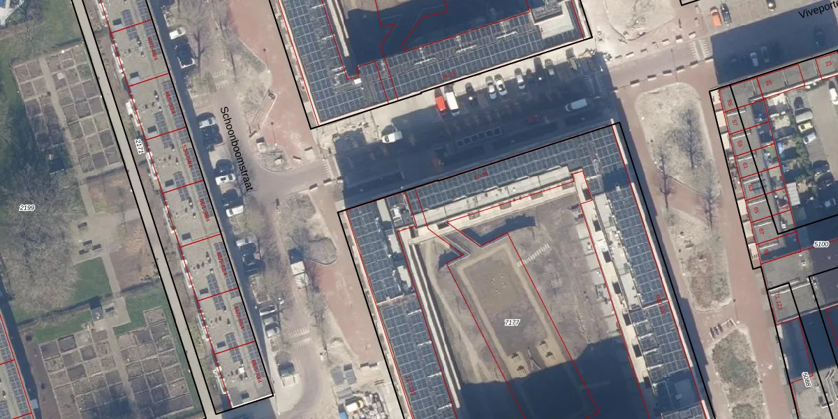Het perceel waarop Viveportenstraat 35 staat heeft een oppervlakte van 6070 m². Dit is een zeer groot perceel. De perceeloppervlakte wordt geregistreerd door het Kadaster. Gedetailleerde informatie over de maten van dit perceel kunt u vinden in het rapport Kadastrale kaart met maatvoering van Viveportenstraat 35.