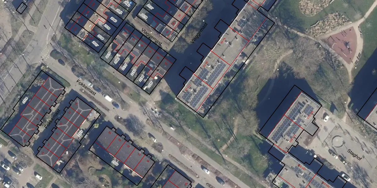 Het perceel waarop Vlaggemast 109 staat heeft een oppervlakte van 5210 m². Dit is een zeer groot perceel. De perceeloppervlakte wordt geregistreerd door het Kadaster. Gedetailleerde informatie over de maten van dit perceel kunt u vinden in het rapport Kadastrale kaart met maatvoering van Vlaggemast 109.