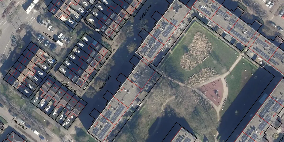 Het perceel waarop Vlaggemast 51 staat heeft een oppervlakte van 5210 m². Dit is een zeer groot perceel. De perceeloppervlakte wordt geregistreerd door het Kadaster. Gedetailleerde informatie over de maten van dit perceel kunt u vinden in het rapport Kadastrale kaart met maatvoering van Vlaggemast 51.