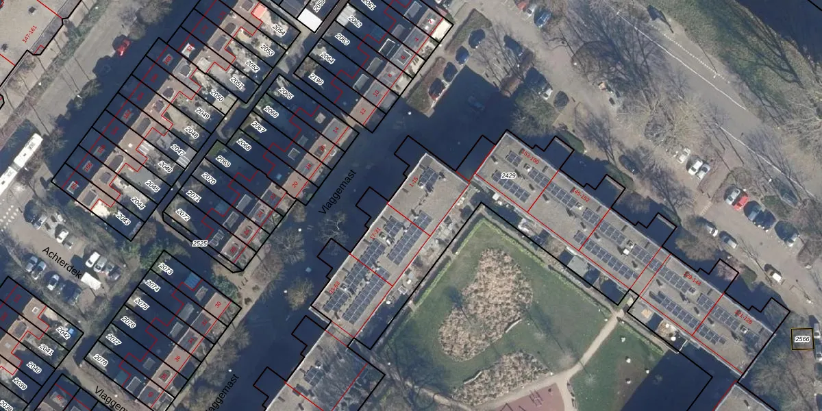 Vlaggemast 9 is gelegen op kadastraal perceel ASD36AQ2429. Deze kadastrale aanduiding is uniek en wordt gebruikt door het Kadaster om eigendomsrechten en andere zakelijke rechten vast te leggen. Het perceel maakt onderdeel uit van de kadastrale gemeente Amsterdam.
