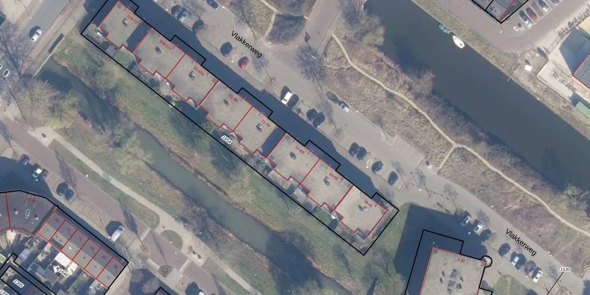 Vlakkerweg 65 is gelegen op kadastraal perceel ASD28AH1654. Deze kadastrale aanduiding is uniek en wordt gebruikt door het Kadaster om eigendomsrechten en andere zakelijke rechten vast te leggen. Het perceel maakt onderdeel uit van de kadastrale gemeente Amsterdam.