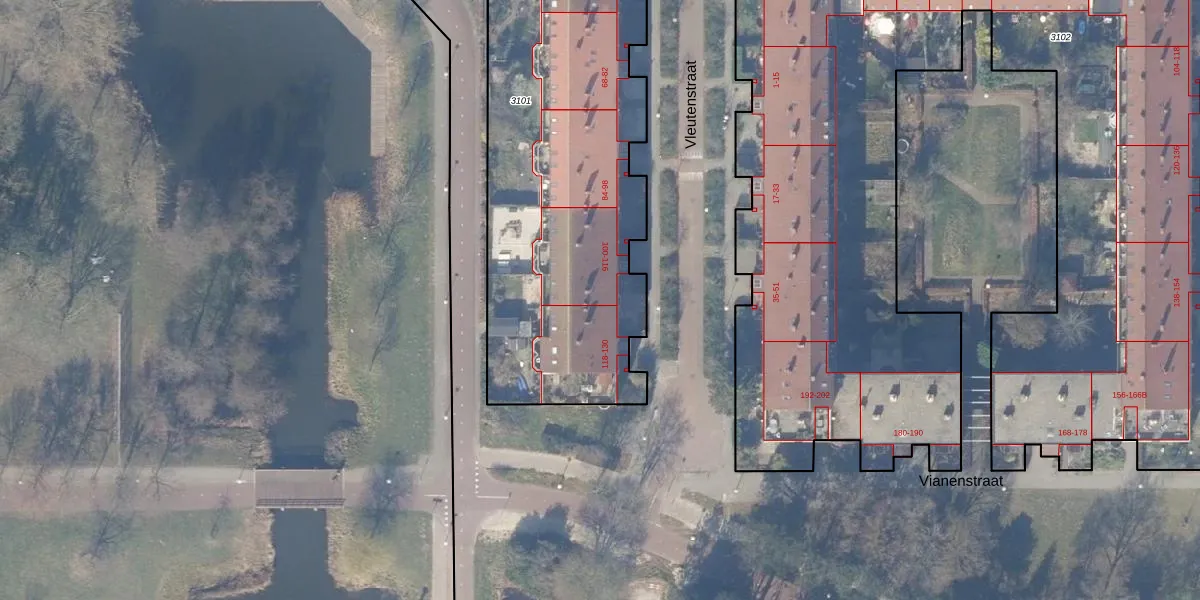Het perceel waarop Vleutenstraat 116 staat heeft een oppervlakte van 3310 m². Dit is een zeer groot perceel. De perceeloppervlakte wordt geregistreerd door het Kadaster. Gedetailleerde informatie over de maten van dit perceel kunt u vinden in het rapport Kadastrale kaart met maatvoering van Vleutenstraat 116.