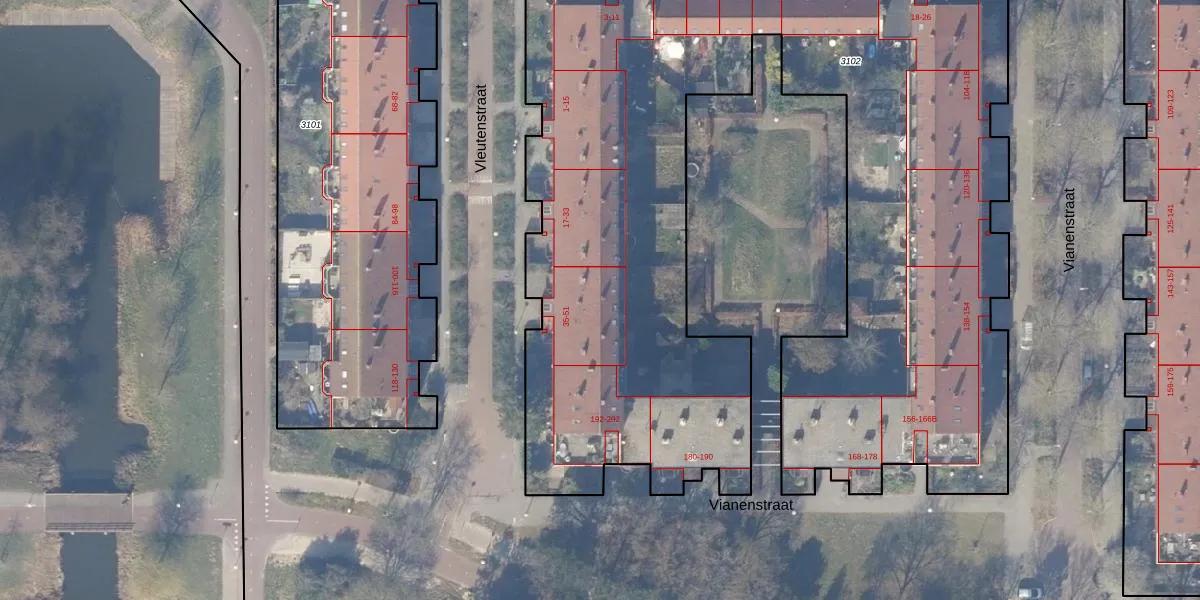 Het perceel waarop Vleutenstraat 39 staat heeft een oppervlakte van 5721 m². Dit is een zeer groot perceel. De perceeloppervlakte wordt geregistreerd door het Kadaster. Gedetailleerde informatie over de maten van dit perceel kunt u vinden in het rapport Kadastrale kaart met maatvoering van Vleutenstraat 39.
