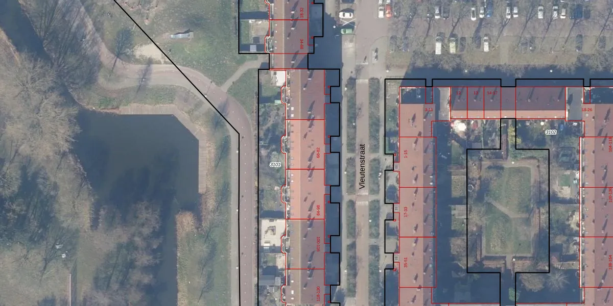 Vleutenstraat 76 is gelegen op kadastraal perceel WPK02L3101. Deze kadastrale aanduiding is uniek en wordt gebruikt door het Kadaster om eigendomsrechten en andere zakelijke rechten vast te leggen. Het perceel maakt onderdeel uit van de kadastrale gemeente Weesperkarspel.