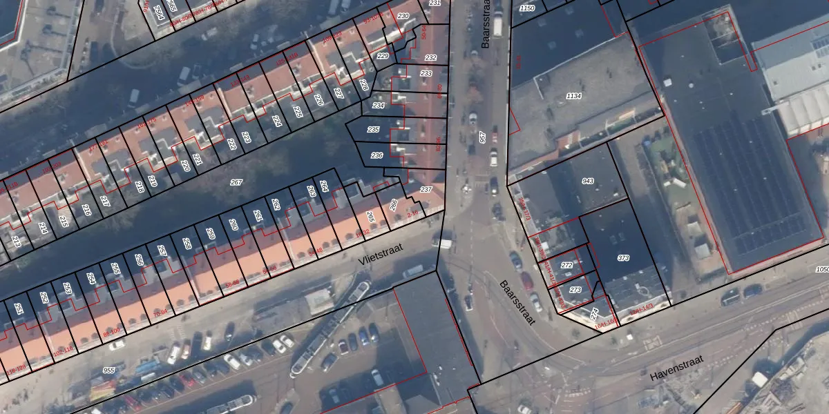 Het perceel waarop Vlietstraat 12 staat heeft een oppervlakte van 77 m². Dit is een klein perceel. De perceeloppervlakte wordt geregistreerd door het Kadaster. Gedetailleerde informatie over de maten van dit perceel kunt u vinden in het rapport Kadastrale kaart met maatvoering van Vlietstraat 12.