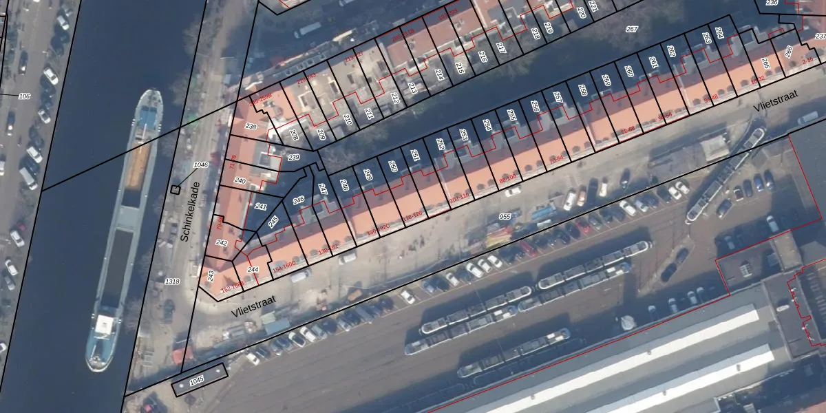 Vlietstraat 122 is gelegen op kadastraal perceel ASD24AC250. Deze kadastrale aanduiding is uniek en wordt gebruikt door het Kadaster om eigendomsrechten en andere zakelijke rechten vast te leggen. Het perceel maakt onderdeel uit van de kadastrale gemeente Amsterdam.