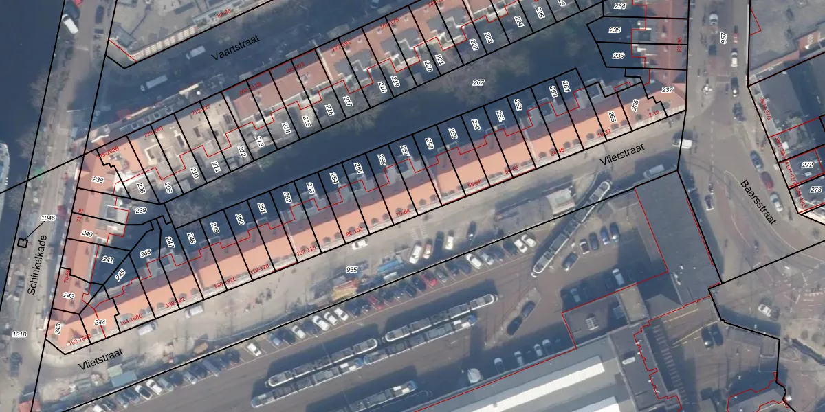 Vlietstraat 70 is gelegen op kadastraal perceel ASD24AC256. Deze kadastrale aanduiding is uniek en wordt gebruikt door het Kadaster om eigendomsrechten en andere zakelijke rechten vast te leggen. Het perceel maakt onderdeel uit van de kadastrale gemeente Amsterdam.