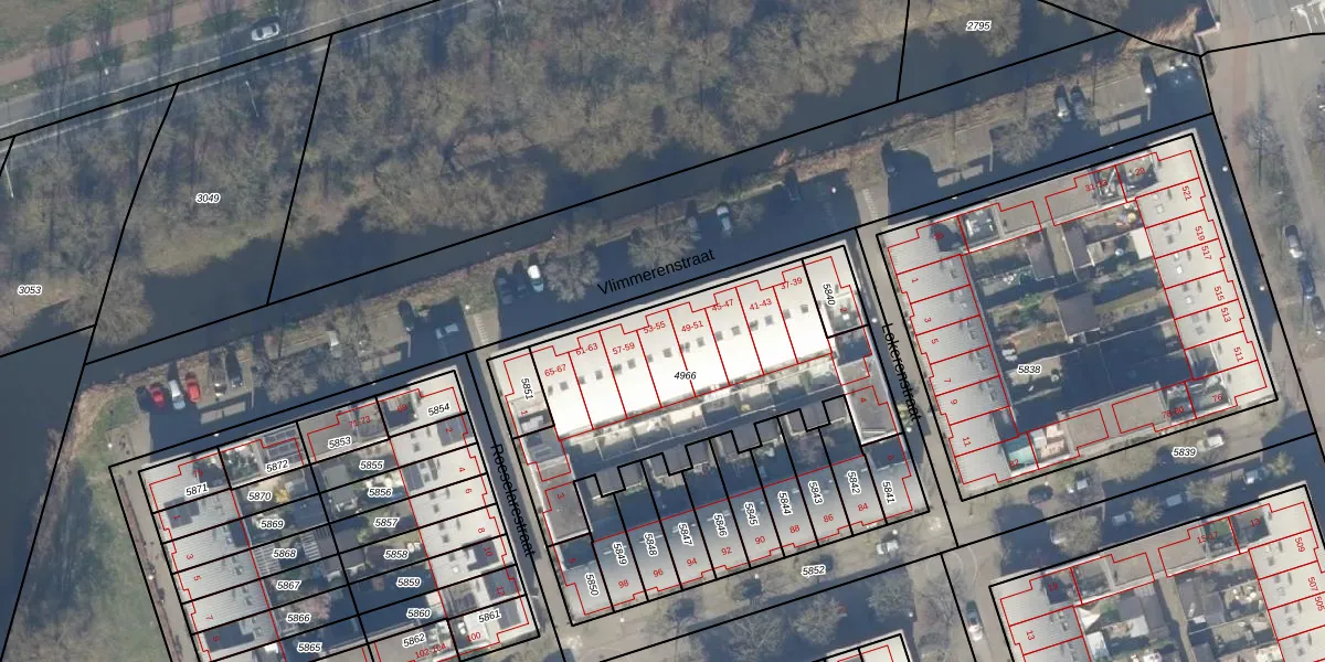 Het perceel waarop Vlimmerenstraat 53 staat heeft een oppervlakte van 1228 m². Dit is een zeer groot perceel. De perceeloppervlakte wordt geregistreerd door het Kadaster. Gedetailleerde informatie over de maten van dit perceel kunt u vinden in het rapport Kadastrale kaart met maatvoering van Vlimmerenstraat 53.