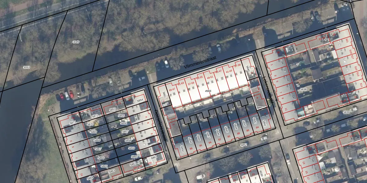 Het perceel waarop Vlimmerenstraat 63 staat heeft een oppervlakte van 1228 m². Dit is een zeer groot perceel. De perceeloppervlakte wordt geregistreerd door het Kadaster. Gedetailleerde informatie over de maten van dit perceel kunt u vinden in het rapport Kadastrale kaart met maatvoering van Vlimmerenstraat 63.