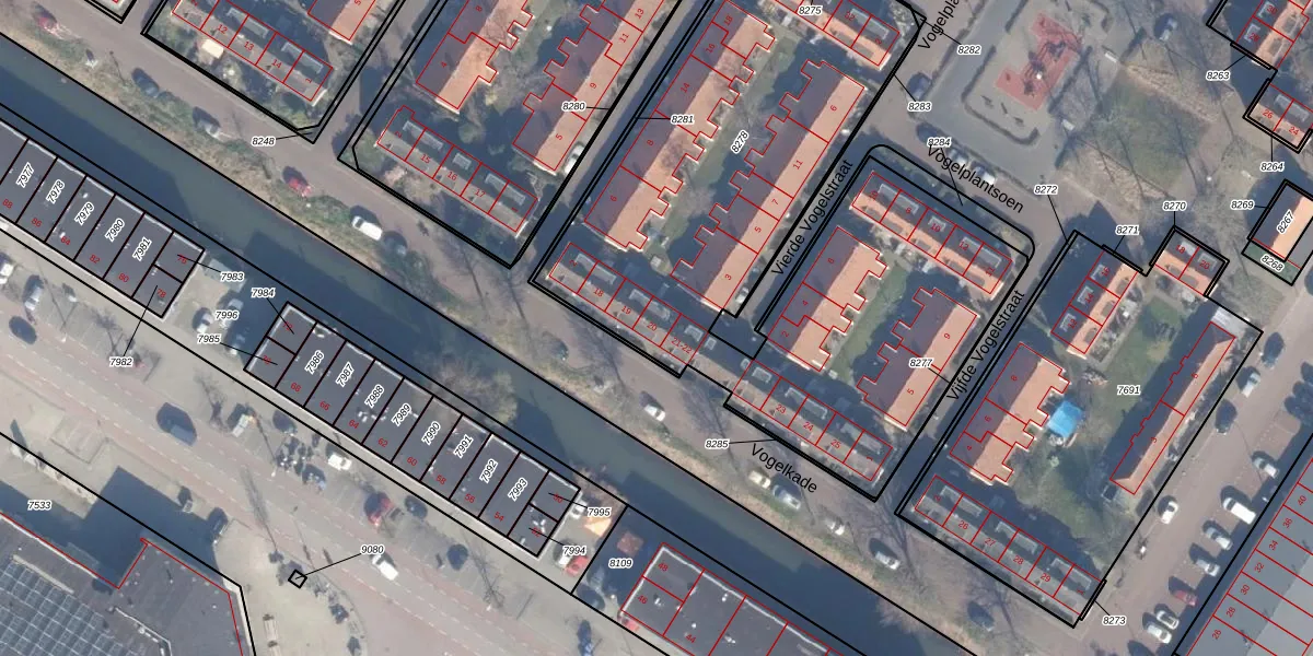 Het perceel waarop Vogelkade 20 staat heeft een oppervlakte van 5118 m². Dit is een zeer groot perceel. De perceeloppervlakte wordt geregistreerd door het Kadaster. Gedetailleerde informatie over de maten van dit perceel kunt u vinden in het rapport Kadastrale kaart met maatvoering van Vogelkade 20.