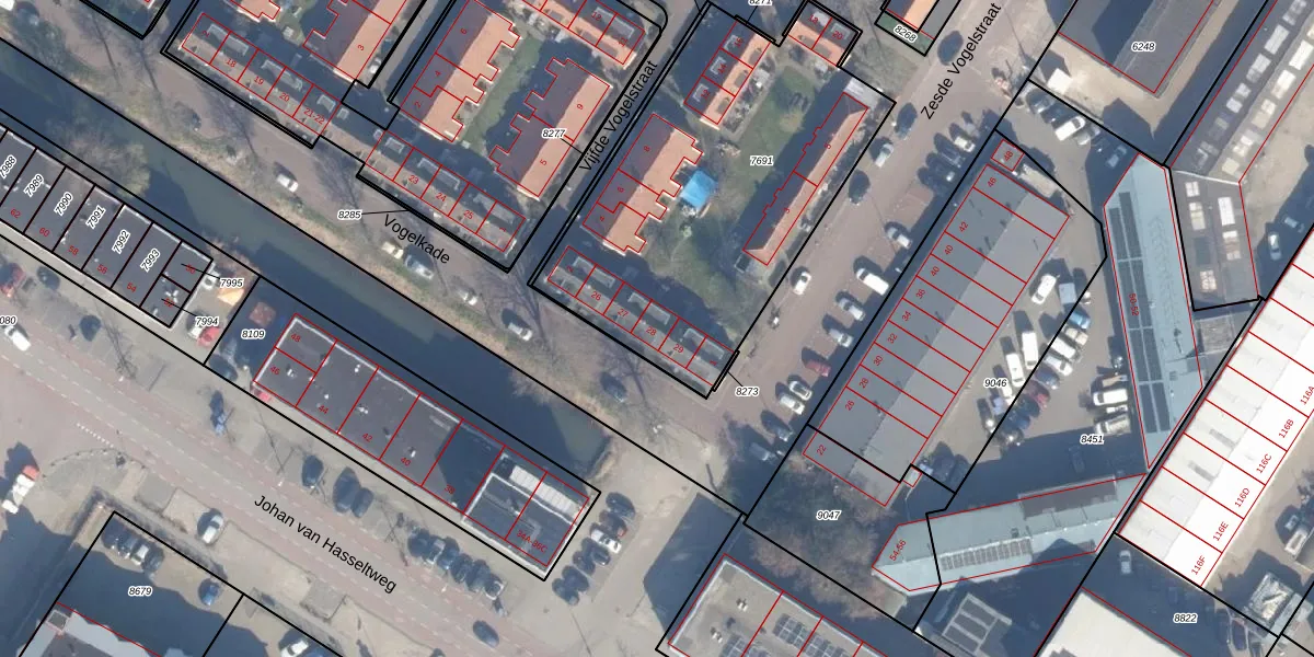 Vogelkade 28 is gelegen op kadastraal perceel ASD07K7691. Deze kadastrale aanduiding is uniek en wordt gebruikt door het Kadaster om eigendomsrechten en andere zakelijke rechten vast te leggen. Het perceel maakt onderdeel uit van de kadastrale gemeente Amsterdam.