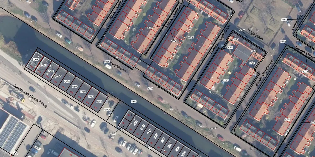 Vogelkade 9 is gelegen op kadastraal perceel ASD07K8234. Deze kadastrale aanduiding is uniek en wordt gebruikt door het Kadaster om eigendomsrechten en andere zakelijke rechten vast te leggen. Het perceel maakt onderdeel uit van de kadastrale gemeente Amsterdam.