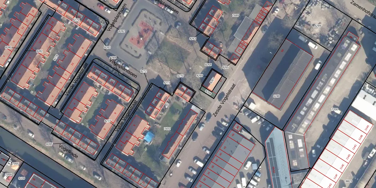 Vogelplantsoen 20 is gelegen op kadastraal perceel ASD07K7691. Deze kadastrale aanduiding is uniek en wordt gebruikt door het Kadaster om eigendomsrechten en andere zakelijke rechten vast te leggen. Het perceel maakt onderdeel uit van de kadastrale gemeente Amsterdam.
