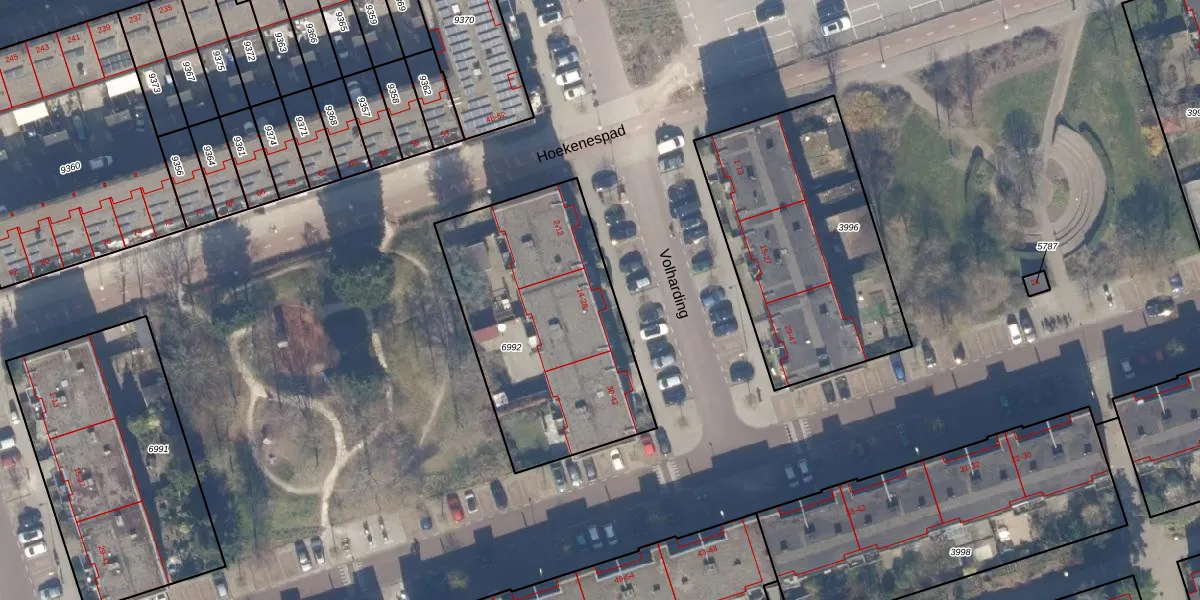 Het perceel waarop Volharding 18 staat heeft een oppervlakte van 1068 m². Dit is een zeer groot perceel. De perceeloppervlakte wordt geregistreerd door het Kadaster. Gedetailleerde informatie over de maten van dit perceel kunt u vinden in het rapport Kadastrale kaart met maatvoering van Volharding 18.
