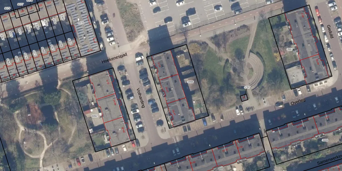 Het perceel waarop Volharding 23 staat heeft een oppervlakte van 1066 m². Dit is een zeer groot perceel. De perceeloppervlakte wordt geregistreerd door het Kadaster. Gedetailleerde informatie over de maten van dit perceel kunt u vinden in het rapport Kadastrale kaart met maatvoering van Volharding 23.