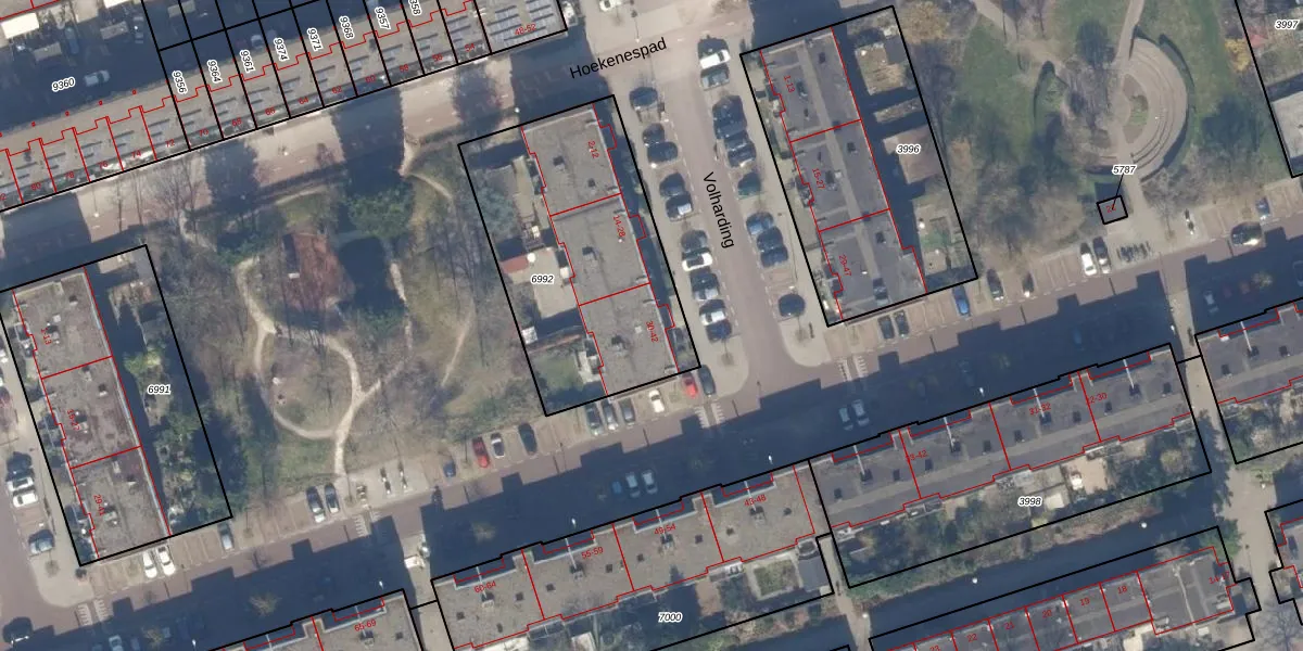 Het perceel waarop Volharding 32 staat heeft een oppervlakte van 1068 m². Dit is een zeer groot perceel. De perceeloppervlakte wordt geregistreerd door het Kadaster. Gedetailleerde informatie over de maten van dit perceel kunt u vinden in het rapport Kadastrale kaart met maatvoering van Volharding 32.