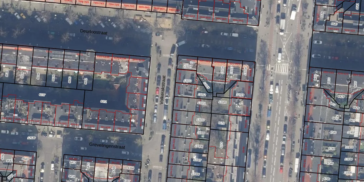 Volkerakstraat 5-H is gelegen op kadastraal perceel ASD18V11012. Deze kadastrale aanduiding is uniek en wordt gebruikt door het Kadaster om eigendomsrechten en andere zakelijke rechten vast te leggen. Het perceel maakt onderdeel uit van de kadastrale gemeente Amsterdam.