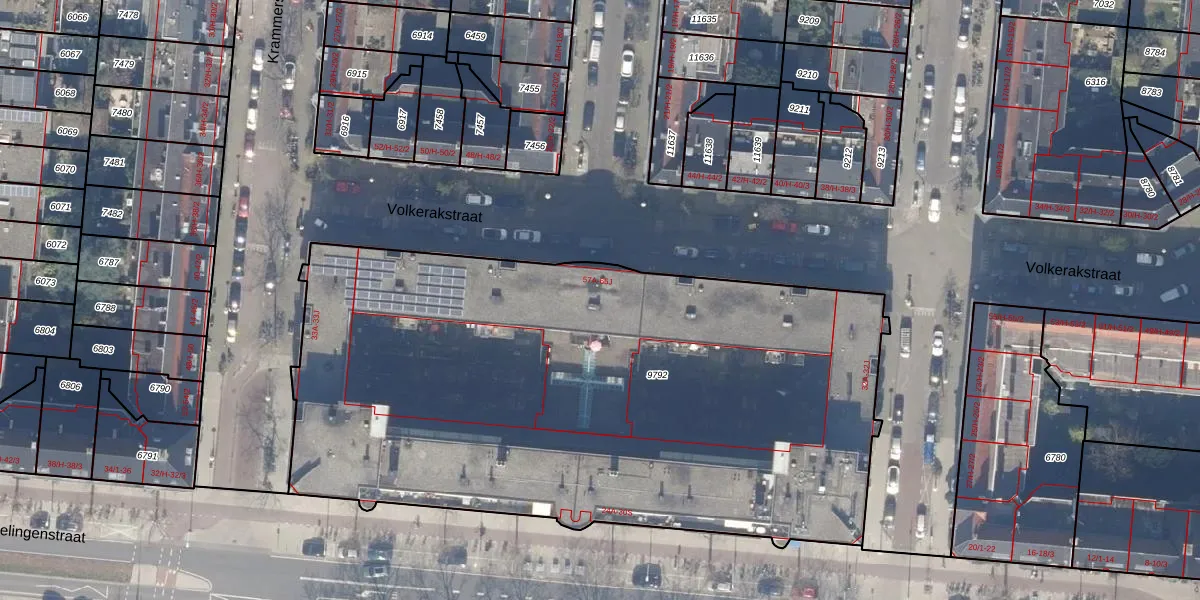 Volkerakstraat 61-C is gelegen op kadastraal perceel ASD18V9792. Deze kadastrale aanduiding is uniek en wordt gebruikt door het Kadaster om eigendomsrechten en andere zakelijke rechten vast te leggen. Het perceel maakt onderdeel uit van de kadastrale gemeente Amsterdam.