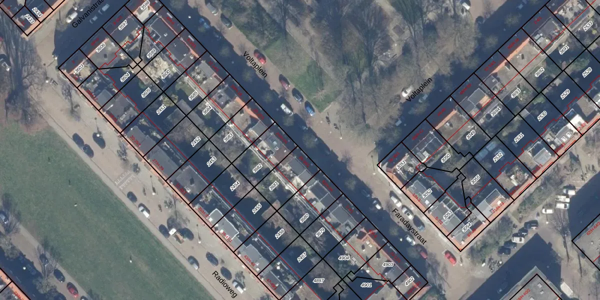 Het perceel waarop Voltaplein 28 staat heeft een oppervlakte van 220 m². Dit is een middelgroot perceel. De perceeloppervlakte wordt geregistreerd door het Kadaster. Gedetailleerde informatie over de maten van dit perceel kunt u vinden in het rapport Kadastrale kaart met maatvoering van Voltaplein 28.