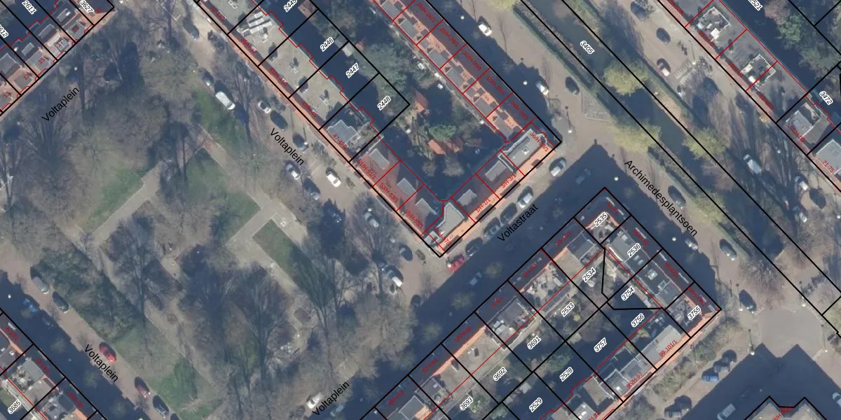 Het perceel waarop Voltaplein 55-1 staat heeft een oppervlakte van 2717 m². Dit is een zeer groot perceel. De perceeloppervlakte wordt geregistreerd door het Kadaster. Gedetailleerde informatie over de maten van dit perceel kunt u vinden in het rapport Kadastrale kaart met maatvoering van Voltaplein 55-1.