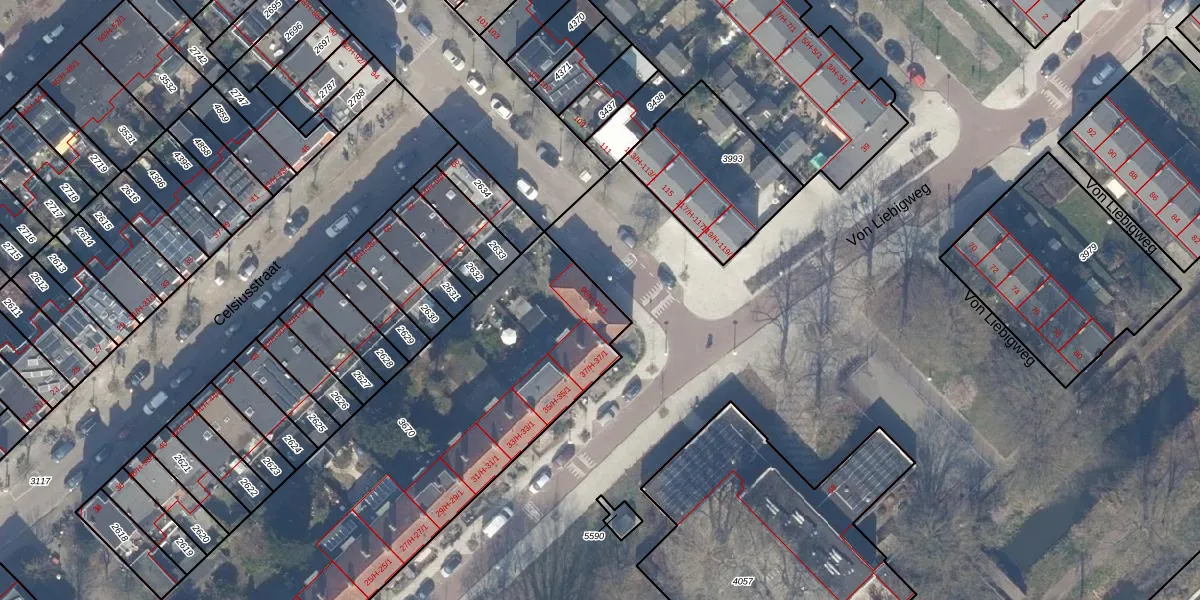 Het perceel waarop het adres ligt is WTG02-A-3670. De afkorting 'WTG02' staat voor kadastrale gemeente Watergraafsmeer. Het perceel is met 2117 m² relatief groot. Het gemiddelde ligt in de kadastrale gemeente Watergraafsmeer op 1559,8 m². De grootste perceeloppervlakte in de kadastrale gemeente is 32,7 ha. De kleinste oppervlakte bedraagt 0 m². Er zijn 22 adressen aanwezig op het perceel. De huidige grenzen van het perceel zijn digitaal in de Basisregistratie Kadaster (BRK) geregistreerd op 18-08-2006.