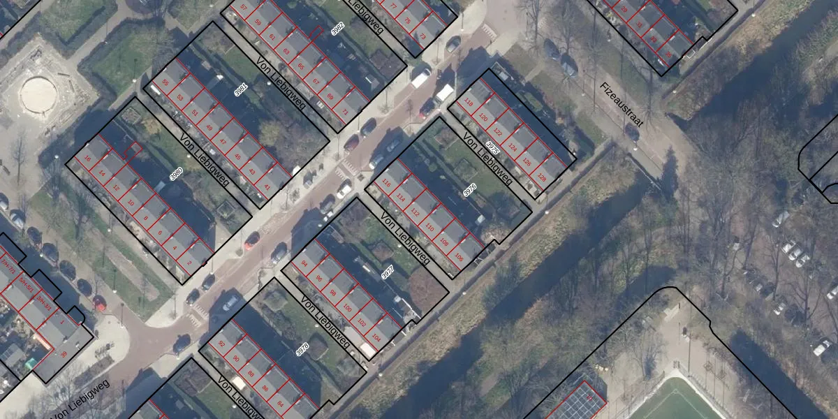 Von Liebigweg 112 is gelegen op kadastraal perceel WTG02A3976. Deze kadastrale aanduiding is uniek en wordt gebruikt door het Kadaster om eigendomsrechten en andere zakelijke rechten vast te leggen. Het perceel maakt onderdeel uit van de kadastrale gemeente Watergraafsmeer.