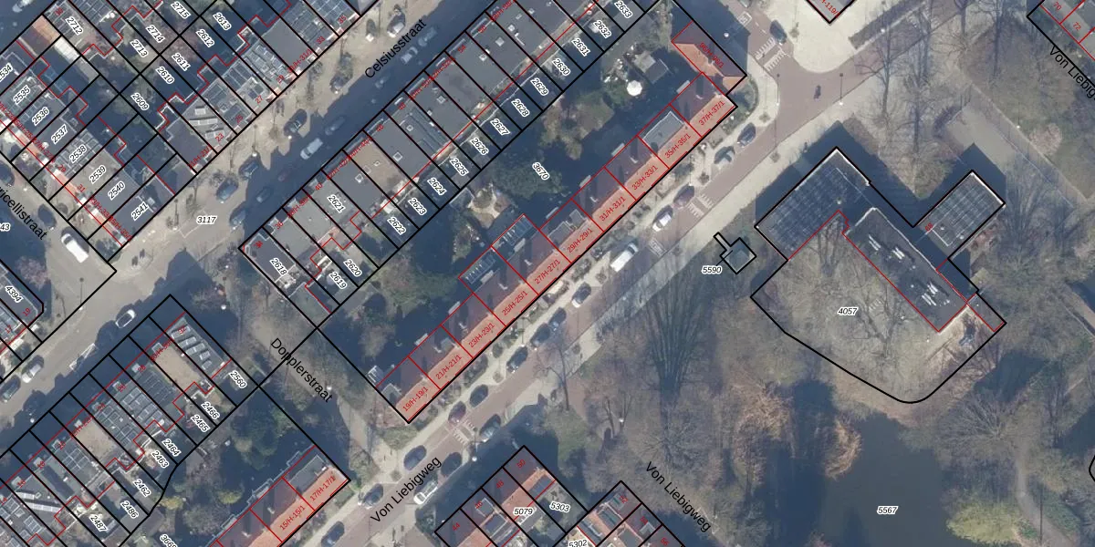 Het perceel waarop Von Liebigweg 27-H staat heeft een oppervlakte van 2117 m². Dit is een zeer groot perceel. De perceeloppervlakte wordt geregistreerd door het Kadaster. Gedetailleerde informatie over de maten van dit perceel kunt u vinden in het rapport Kadastrale kaart met maatvoering van Von Liebigweg 27-H.