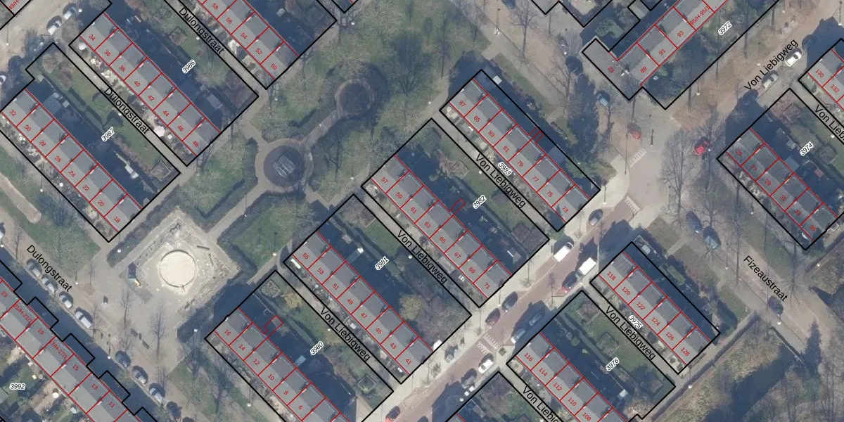 Von Liebigweg 61 is gelegen op kadastraal perceel WTG02A3982. Deze kadastrale aanduiding is uniek en wordt gebruikt door het Kadaster om eigendomsrechten en andere zakelijke rechten vast te leggen. Het perceel maakt onderdeel uit van de kadastrale gemeente Watergraafsmeer.