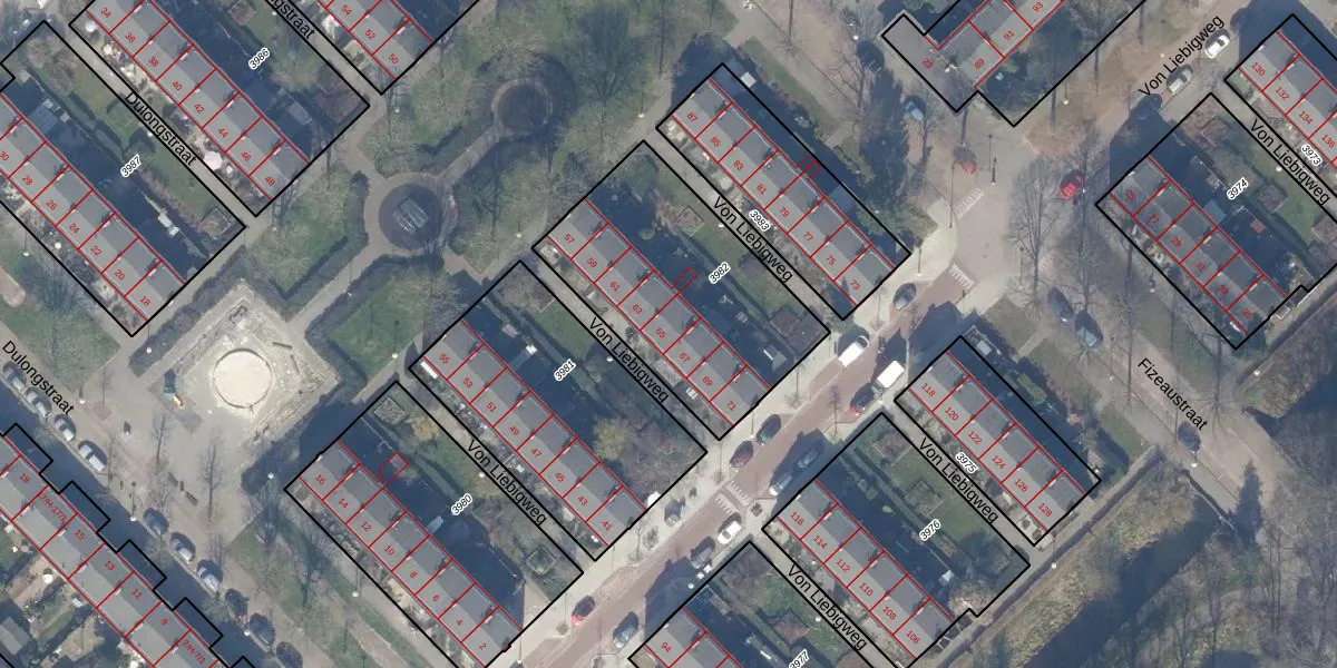 Het perceel waarop Von Liebigweg 65 staat heeft een oppervlakte van 932 m². Dit is een groot perceel. De perceeloppervlakte wordt geregistreerd door het Kadaster. Gedetailleerde informatie over de maten van dit perceel kunt u vinden in het rapport Kadastrale kaart met maatvoering van Von Liebigweg 65.