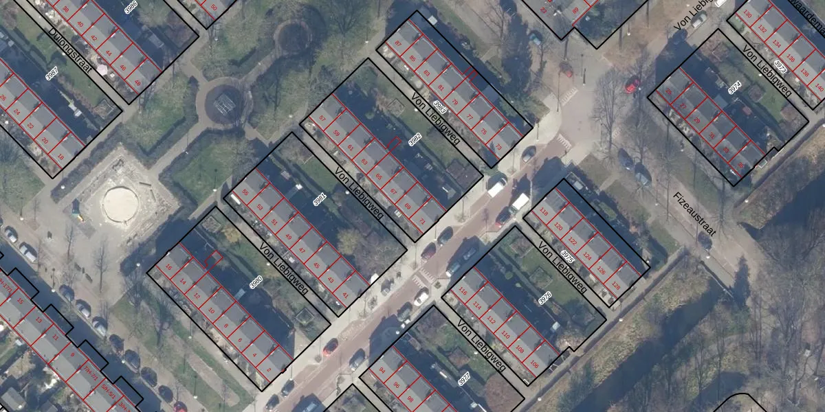 Von Liebigweg 69 is gelegen op kadastraal perceel WTG02A3982. Deze kadastrale aanduiding is uniek en wordt gebruikt door het Kadaster om eigendomsrechten en andere zakelijke rechten vast te leggen. Het perceel maakt onderdeel uit van de kadastrale gemeente Watergraafsmeer.