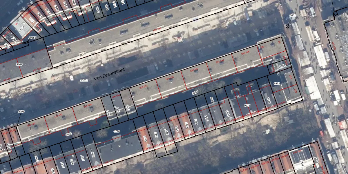 Von Zesenstraat 232 is gelegen op kadastraal perceel ASD15S8600. Deze kadastrale aanduiding is uniek en wordt gebruikt door het Kadaster om eigendomsrechten en andere zakelijke rechten vast te leggen. Het perceel maakt onderdeel uit van de kadastrale gemeente Amsterdam.