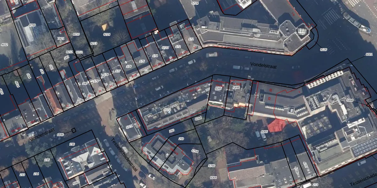 Het perceel waarop Vondelstraat 11-B-4V staat heeft een oppervlakte van 603 m². Dit is een groot perceel. De perceeloppervlakte wordt geregistreerd door het Kadaster. Gedetailleerde informatie over de maten van dit perceel kunt u vinden in het rapport Kadastrale kaart met maatvoering van Vondelstraat 11-B-4V.